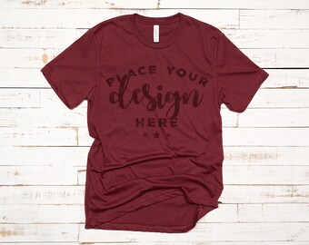 Download Free Bella Canvas 3001 Tshirt Mockup Heather Cardinal On Distressed Wood Background Hi Res Jpeg Image 300 ppi Mock-up PSD Template, Free, PSD, Mockup, Magazine, Book, Stationery, Apparel, Device, Mobile, Editorial, Packaging, Business Cards, iPad, MacBook, Glassware, Beer, Bottle, Wine